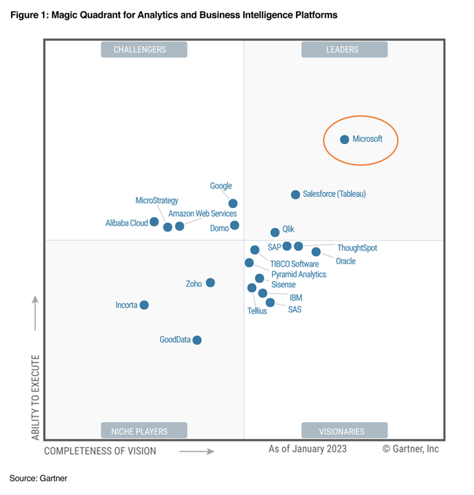 Microsoft ha recibido el nombramiento de líder en la edición de marzo de 2023 de Gartner® Magic Quadrant™ for Analytics and Business Intelligence Platforms.